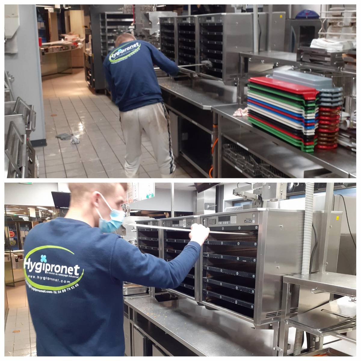 Nettoyage quotidien de votre fast-food, comprenant la cuisine, les sanitaires, et la salle de restauration rapide (malheureusement fermée à cause de la Covid 19), à votre demande, nous avons procédé, au grand nettoyage des passe-plats. Un travail effectué en amont, quant à la réouverture totale du fast-food, prévue en juin, date à laquelle nos agents d'entretien, reprendront pleinement et avec joie, toutes leurs fonctions.